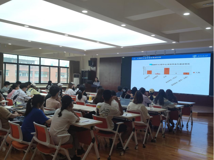 刘咏梅书记和毕业班辅导员樊菊老师为全体同学进行就业、升学的规划指导。