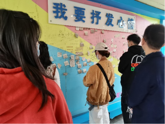 在此之后,老师又向同学们介绍了眼动仪和脑电仪,眼动仪可以用来记录眼睛的视觉轨迹,广泛应用于注意、认知等领域,脑电仪可以收集、放大被试的脑电信息,便于更准确地分析。参观完心理学实验仪器后,活动接近尾声,老师带同学们参观了“心情墙”,无论是何种心情,都可以写下来贴在墙上,老师鼓励同学们抒发自己的心情,如此更有利于心理健康。