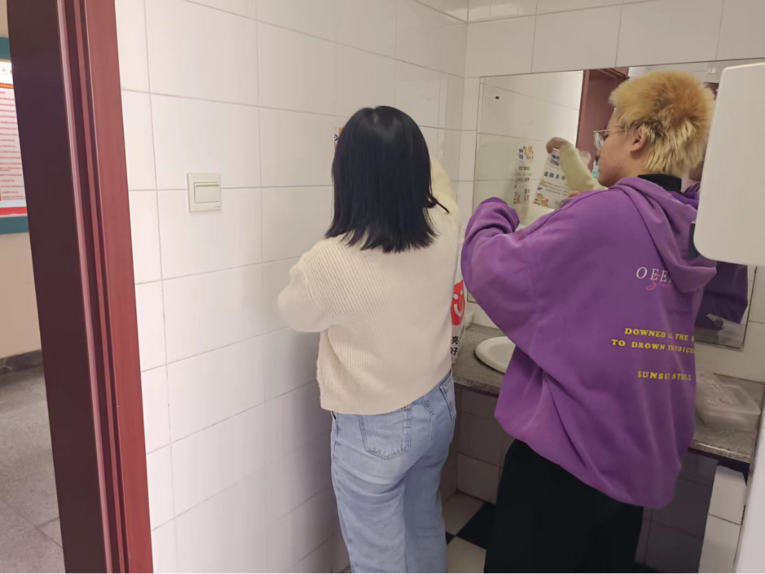 志愿者提前准备好卫生巾互助盒以及相应的互助盒使用小报,在活动时间于五号教学楼集合。八名志愿者分开行动,互助盒投放地点分别在X5230、X5321、X5330、X5430、X5521、X5530、X5621、X5630等教室旁边的女卫生间,基本覆盖五号教学楼。