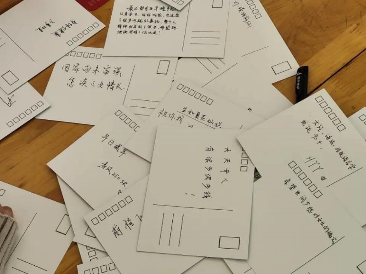 园园和工作人员们一起在二、三食堂前搭建起了温暖小驿站,在工作人员的引导下,同学们都有序地参加活动。一张张明信片上留下的是女生们手写的心愿,留下的是男生们对女生们真诚的祝福。故事到此还没有结束,有的明信片还带着它的使命飞入了男同学的手中,携手完成女生们的心愿。