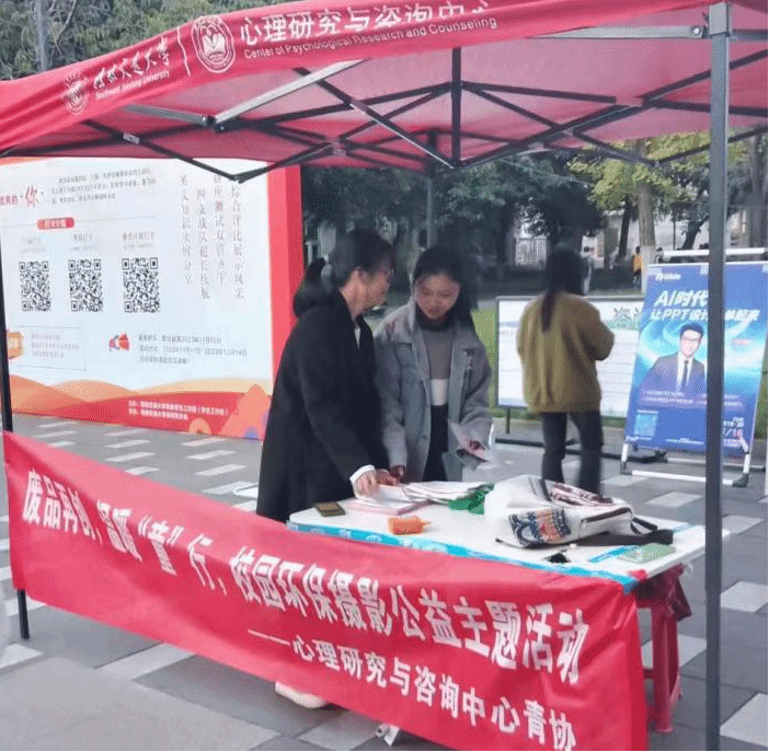 在这次活动中,青年志愿者们以积极的态度和热情的精神,通过线上线下的方式进行广泛宣传和实际行动。在线下,志愿者们在人流量大的地方设立了宣传摊位,分发活动宣传单,详细讲解活动的意义和环保的重要性,同时邀请同学们亲自动手制作废品再利用的手工艺品,为山区儿童准备一份特别的礼物,以“书信传情”给山区儿童传递温暖与力量。