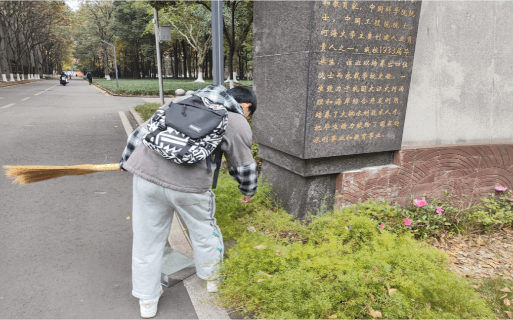 本次校园雕塑清洁活动于11月30日下午在犀浦校区四号教学楼与五号教学楼之间的严恺先生纪念像处展开。这次活动是为了向严恺先生表达敬意,并维护校园的环境。在活动期间,心理青协的志愿者们非常细心,他们不仅擦拭了雕塑本身,还清扫了四周的落叶。这些志愿者们用实际行动表达了对校园环境的爱护和尊重。