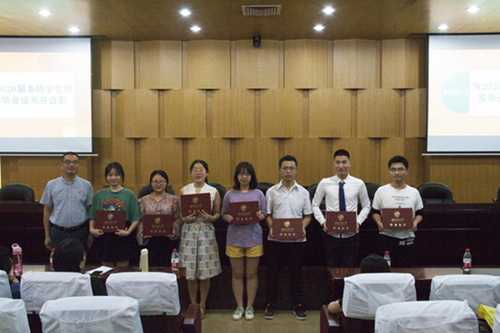 After the speech, Director Chen Hua and Deputy Director Lei Ming presented diplomas respectively to the bachelors and masters of 2020 and had photos taken with the students. Meanwhile, He Yanan—a representative of the graduates—offered flowers to Chen Hua as a gesture of gratitude for the earnest and tireless teaching and cultivation by the university, the center and the teachers.