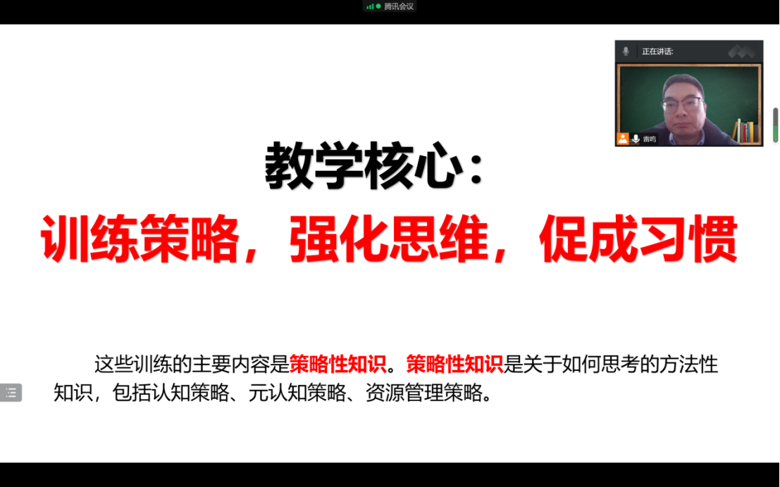 2022年12月2日下午14:00,雷鸣老师通过腾讯会议,以《深度学习:基于学习七阶段策略使用的差异分析》为题,向大家分享了迭代优化《思维训练与学习方法进阶》跨学科课程教学内容的建设新思路。