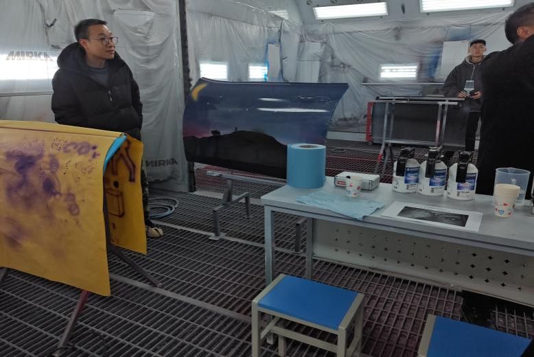 接着,代表们前往汽车喷漆科普场地,观摩了修复汽车凹痕的工具和操作手法,认识了多种的喷漆工具和喷漆工艺。