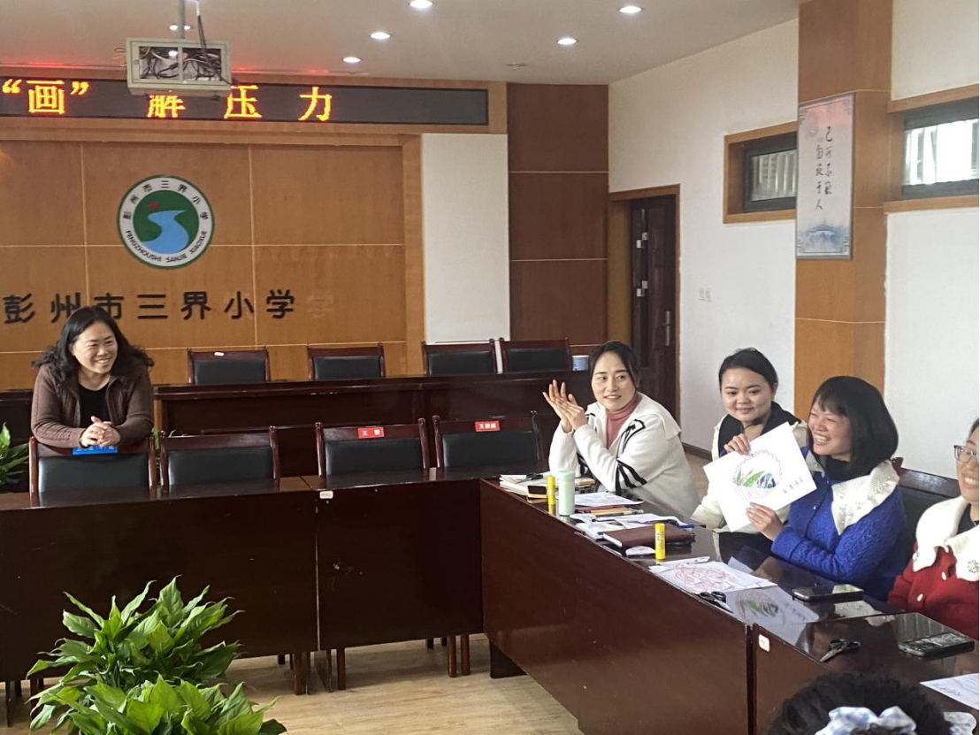 张学伟副教授、刘沐晨同学为三界小学的班主任们开展了名为《“解”心沙龙》以及名为《“画”解压力》的减压团体活动,与小学班主任交流心理健康教育过程中的困难与压力,助力小学教师的育人工作。