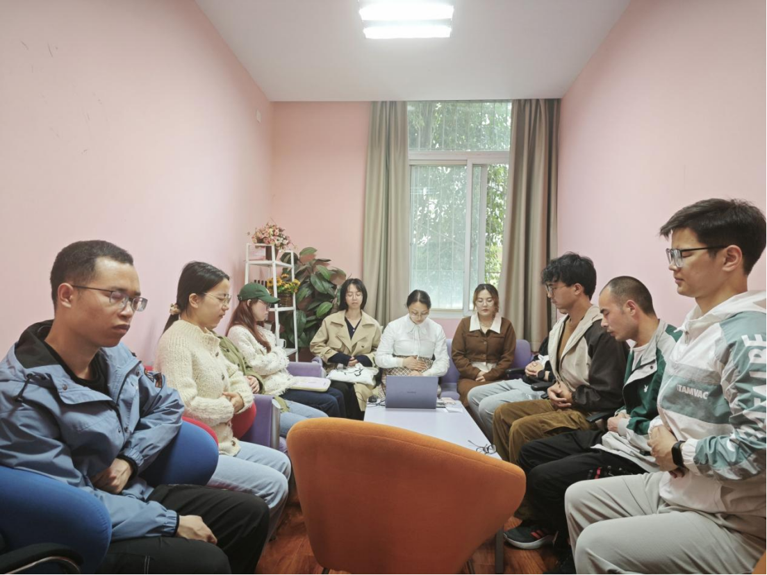 唐静老师开展了“正念与学业拖延”主题团体辅导活动,引导同学们打开自己内心,体验正念的力量,觉察拖延背后的正面动机,以期帮助同学们寻找改变的方法,同时获得支持与人际链接。本次活动在九里校区眷诚斋3幢咨询室进行,12位同学报名参加。