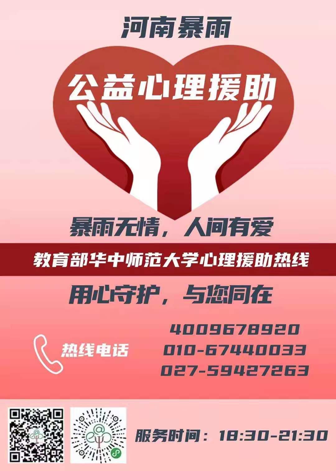 连日来,河南全省尤其是郑州遭到强降雨侵袭,各地灾情严重。学校心系河南,特向身处其中的广大学子打开心理支持与心理援助绿色通道,以协助同学们顺利度过此次灾情带来的不良影响。学校瓜子影视