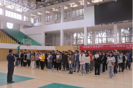 主办,“心之轩”心理健康辅导员工作室承办,研究生心理学会协办的研究生心理观察员素质拓展团体训练活动在九里校区詹天佑体育馆如期举行。来自2021级研究生班级的110位心理观察员参与了该活动。