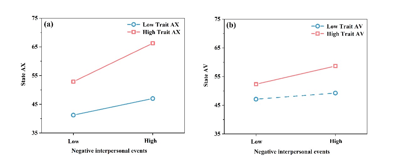 图1. 特质依恋焦虑/回避对负性人际事件与状态依恋焦虑/回避之间关系的跨层次调节效应