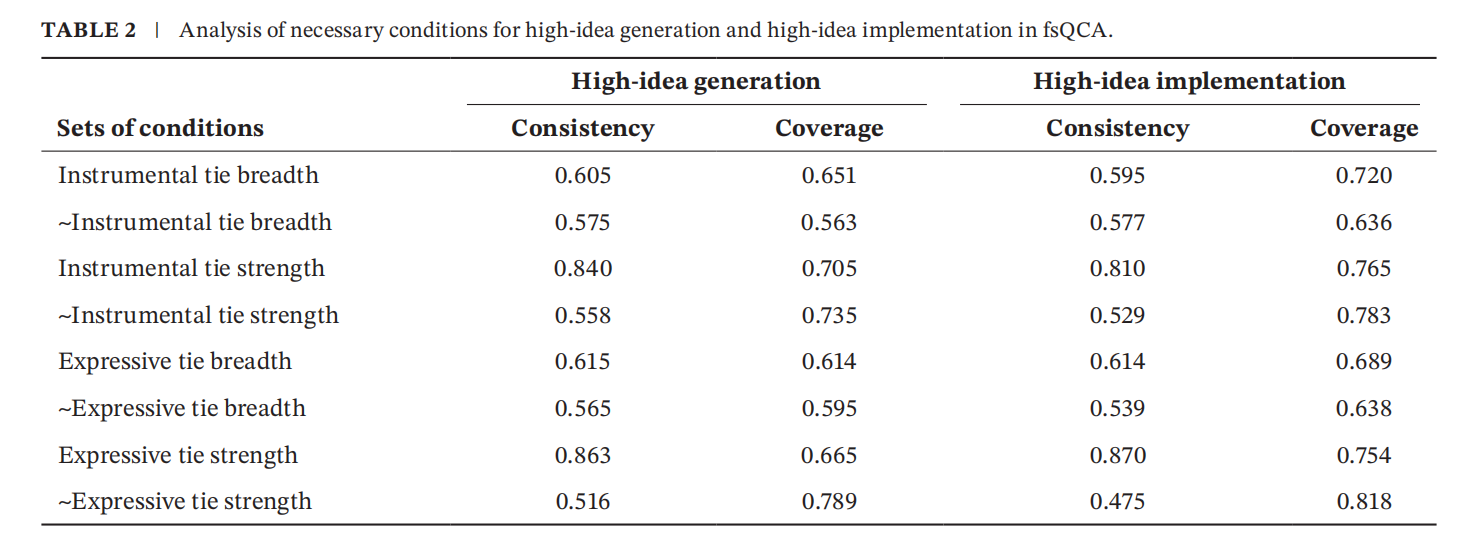 文献来源:Liu, T., Lu, S., & Mao, Y. (2024). Facilitating Individual Innovation from the Perspective of Social Network Ties: A Fuzzy‐Set QCA Approach. R&D Management. //doi.org/10.1111/radm.12737