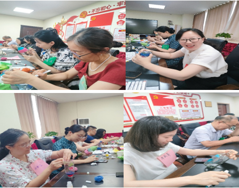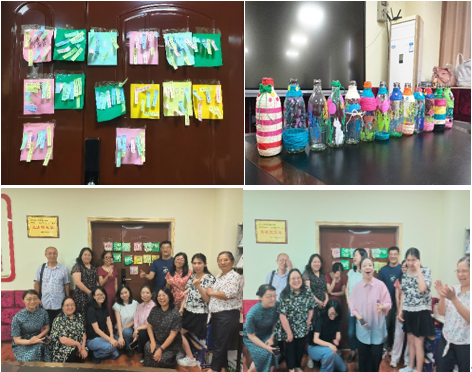 随后,在分享“魔力水”的基础上,老师们充分发挥想象力,运用彩笔、麻绳等工具创作了“夏日花语瓶”,将对美好生活的向往融入其中。