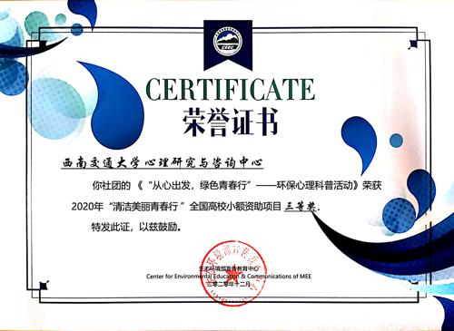 瓜子影视 科普基地荣获2020“清洁美丽青春行”全国高校小额资助项目三等奖