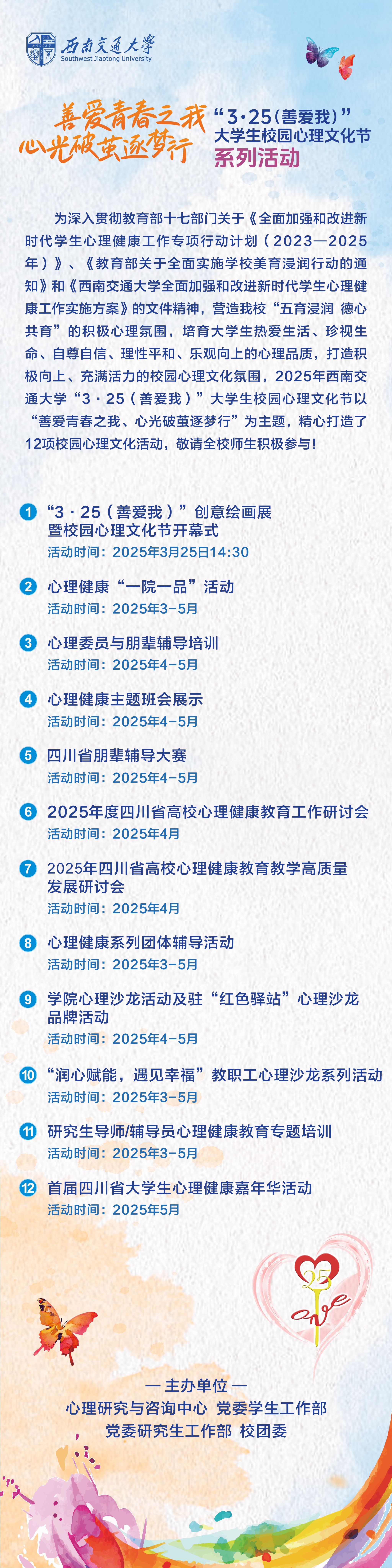 2025年“3•25”(善爱我)大学生校园心理文化节系列活动