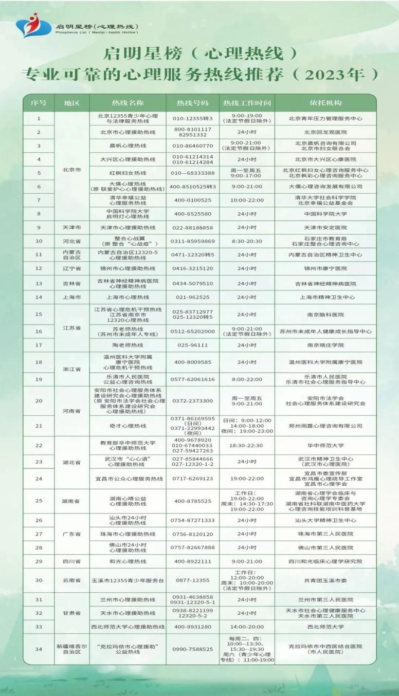 同学们,无论你身在何处,学校始终都关心每一位同学的心理健康。希望这份心理服务资源汇总信息能在需要之时给予你一定的帮助与支持。祝同学们假期愉快!