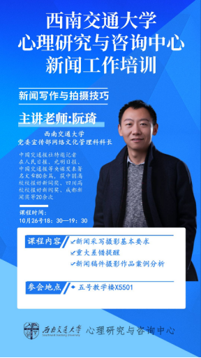 为进一步提高大学生骨干、宣传组织等青年群体新闻写作与拍摄的能力,加强中心宣传部力量,为中心、学校的宣传工作增添光彩,瓜子影视 定于2022年10月26日举办新闻工作培训——“新闻写作与拍摄技巧”。现将有关事宜通知如下: