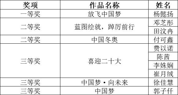 根据活动安排,经评委对参赛作品进行评审,共产生一等奖作品1份,二等奖作品2份,三等奖作品3份。现将获奖名单公布如下: