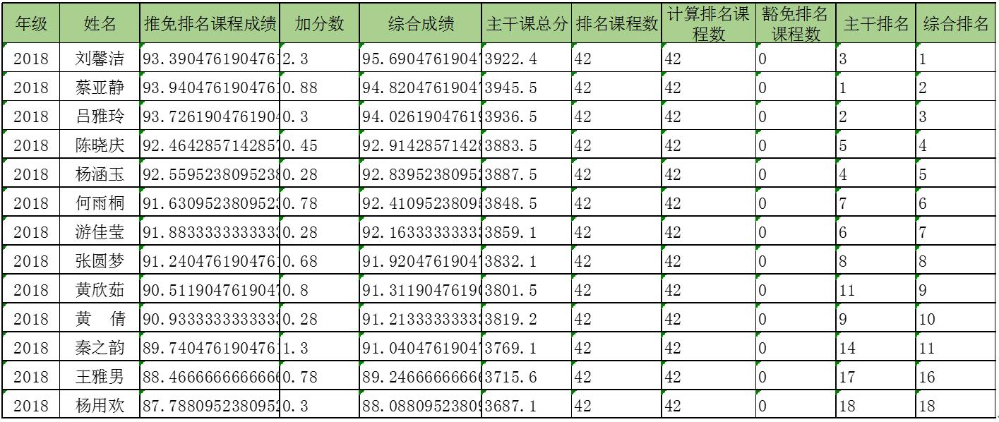 根据《瓜子影视 关于开展推荐2022届优秀应届本科毕业生免试攻读研究生工作的通知》,刘馨洁等13位同学申请2022届优秀应届本科毕业生免试攻读研究生资格,并对排名课程成绩、加分情况进行签字确认,经中心推免生遴选工作小组审定,现将这13位申请推免生资格的学生的推免排名课程成绩、综合评议加分、综合成绩以及综合排名进行公示,具体内容见下表。