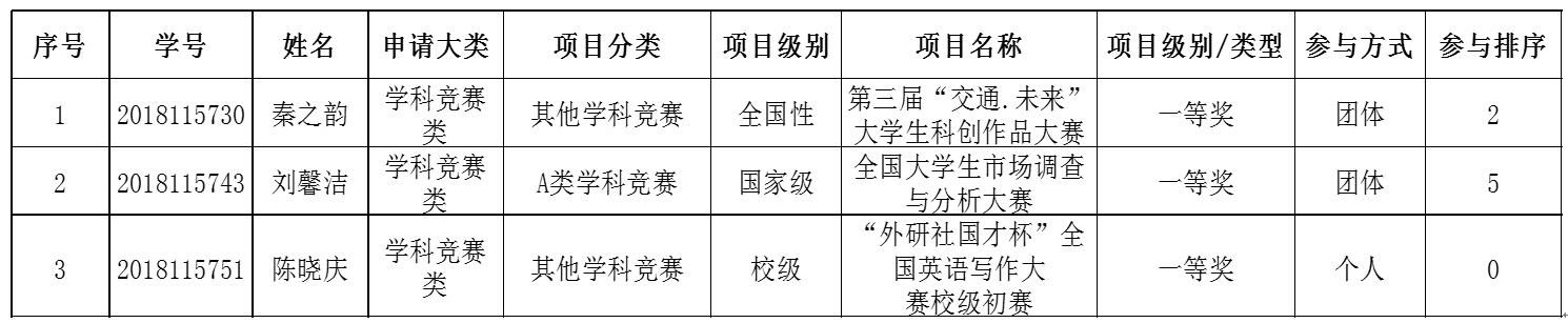 按照2022届推免工作相关安排和要求,经9月13日下午公开答辩(1人自愿放弃公开答辩)、中心特殊学术专长专家审核工作小组审核,现将认定通过的特殊学术专长加分奖项公示如下: