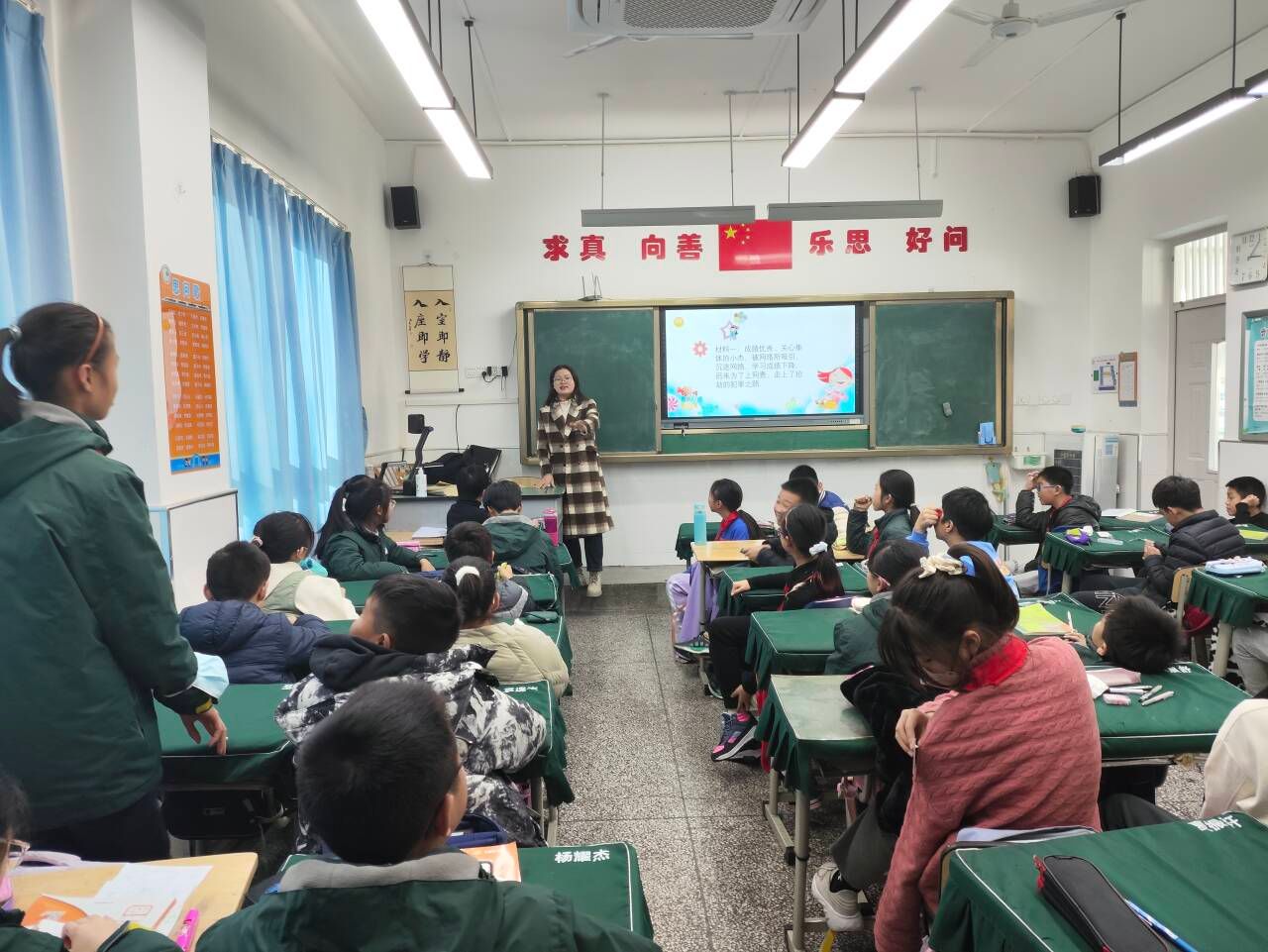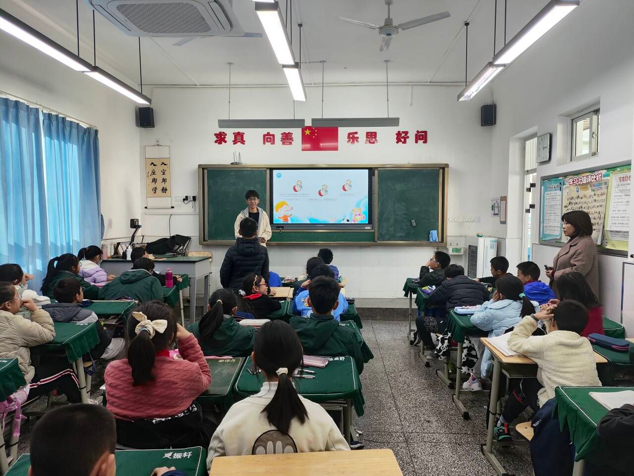 本次课堂开始,老师以一首歌(雾里看花)引入,悠扬的歌声使同学们进入课堂状态。接着以问题互动形式,活跃课堂氛围,调动同学们的积极性和课堂参与度。