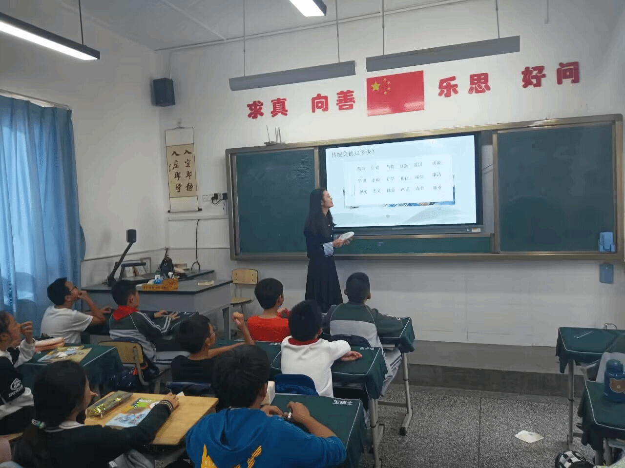 老师们在讲述这些传统美德时,分为了五个章节,并给大家分享了关于每个传统美德背后的小故事,在老师讲述这些时,同学们都很积极与老师们互动,积极思考讨论问题并踊跃发言给出自己的回答。