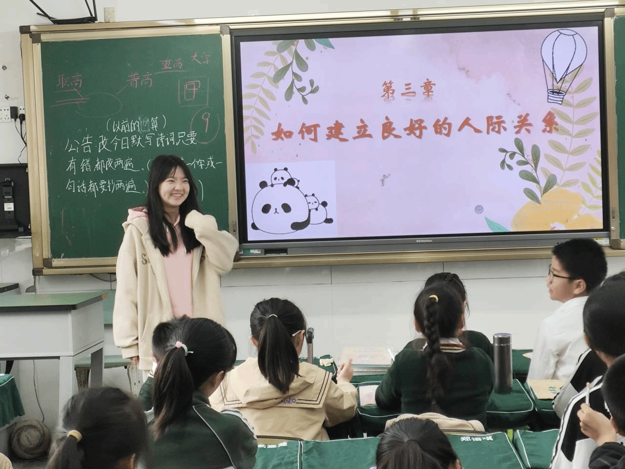 最后,通过朗诵两首人与人之间交流的小诗,教会同学们如何与朋友友好的交往,同学们都收获满满。