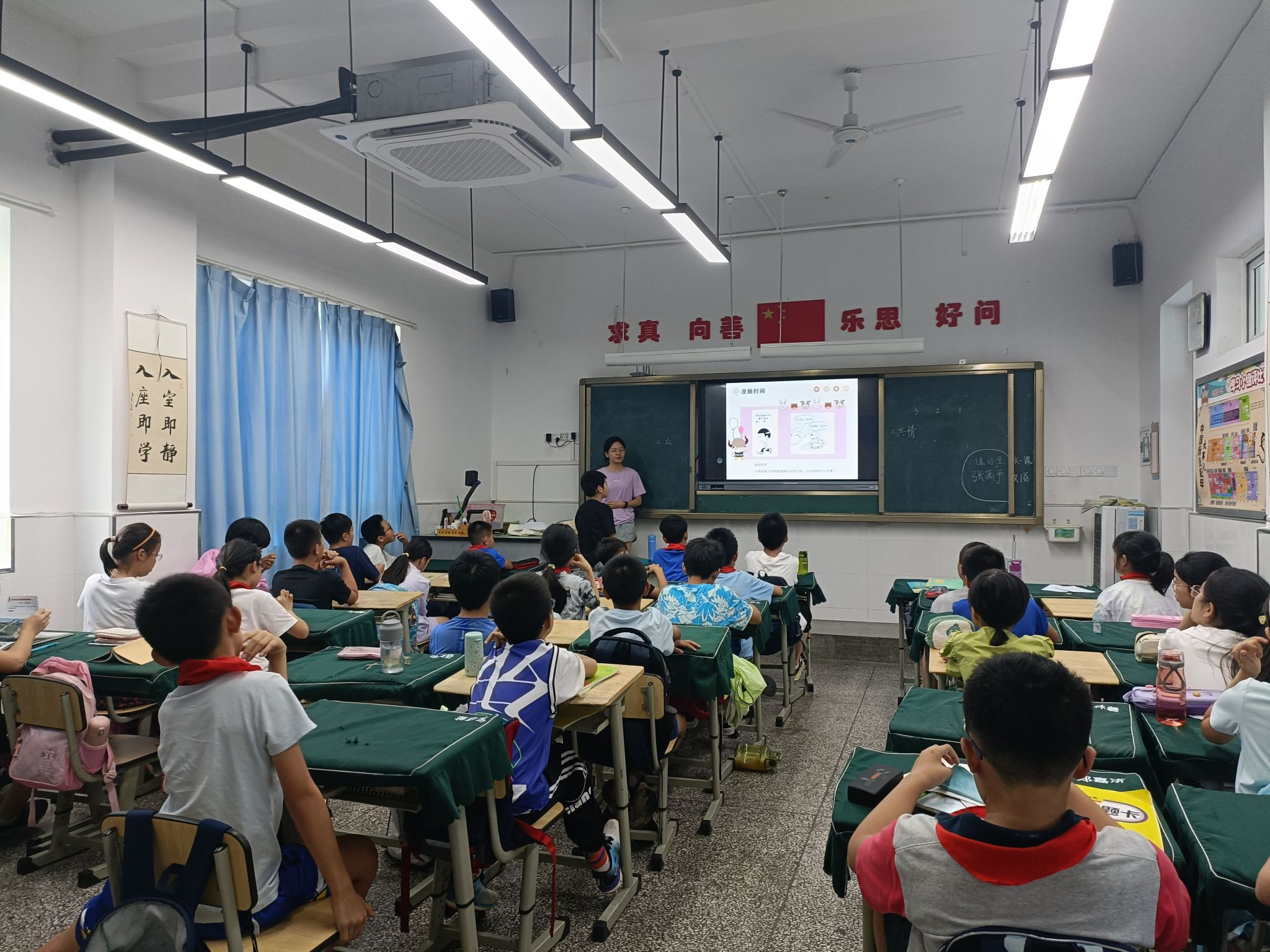 本次讲课一共45分钟。首先老师让同学们观看一个小视频,请同学们回答并分享自己的看法以及感受。同学们踊跃回答问题,对视频内容表现出极大的兴趣。