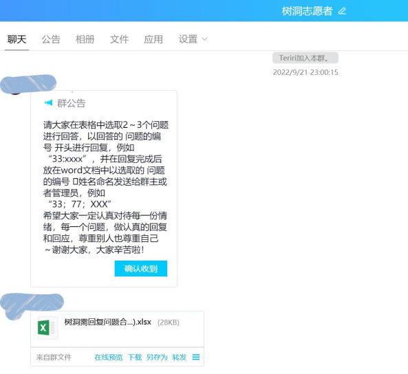 组建群聊,在群聊内完成通知和问题发放。