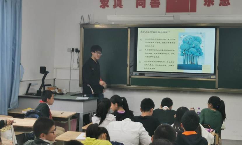 为了引导同学们独立思考,拒绝盲从,西南交大大学生心理学会于4月初在九里校区交大子弟小学举办了交大心学校外咨询活动,由大学生心理学会组织,两位同学张永乐、李政进行活动。在活动中张永乐负责主讲人,李政负责拍摄记录。