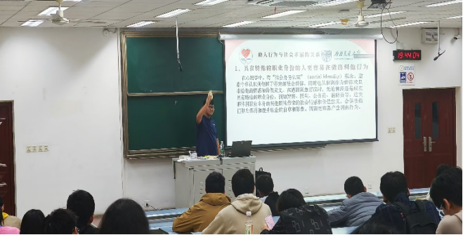 此次讲座旨在向同学们介绍各种利他行为的成因,呼吁同学们能更多地帮助他人。现场气氛融洽,参与到其中的同学都积极与主讲人互动,展现了积极的求知精神。