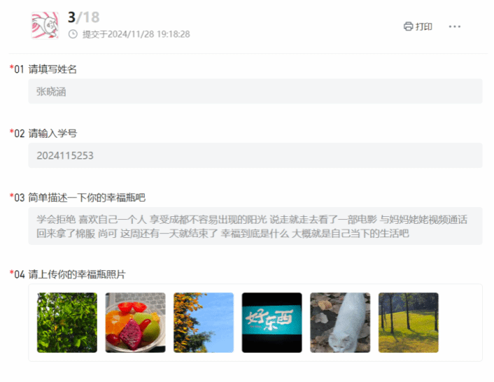 活动结束后,不少参与者表示收获满满,他们将带着在此次活动中养成的习惯与积累的幸福能量积极前行。刘同学表示:“这21天打卡让我学会了自我调节,心态更积极,面对学业压力也更从容了。”戴同学表示:“通过活动,我养成了关注内心的习惯,找到了很多提升幸福感的小窍门,收获满满。”