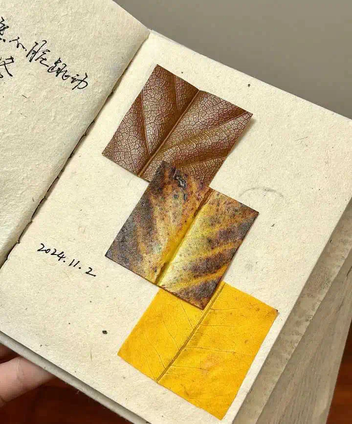 银杏叶、枫叶、榆树叶;浆果、松果、悬铃果;签字笔、毛笔、水彩笔;纸巾、相卡、丝带……各样的元素在大学生手中化作一幅幅充满生命力的贴画,一篇篇细腻而美好的手帐。林间跳跃的麋鹿,小王子与独一无二的玫瑰,日暮西垂的山景,伴着朝阳锻炼的熊猫……每一幅作品,都是对季节变化的深刻感悟,都是对日常点滴的细心捕捉,都是对生活美好的独特诠释。