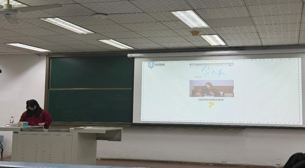 随后,周淮玉同学分享了四大解锁配得感的实用方法:一是认知重塑,当“我不行”的消极想法出现时,用过往成功经历或客观事实反驳,改写自我叙事;二是行为激活,从微小行动开始尝试,积累正向反馈,逐步打破“不敢尝试”的心理壁垒;三是能量调频,远离消耗性的否定评价,多关注自身闪光点与进步,营造积极的心理环境;四是接纳感恩,正视自身不完美,每天记录一件值得感恩的小事,在点滴中夯实内心的富足感。