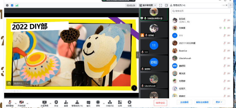2022 年5月26日晚上八点,瓜子影视 创造学会在腾讯会议举办了创造学会换届大会。本次换届大会由会长赵泓屹同学主持,绘影部姜舒阳同学策划,出席本次大会的有创造学会全体会员,各部门参与竞选的干事。