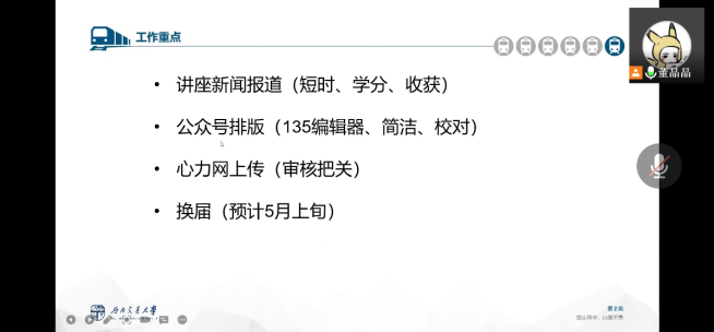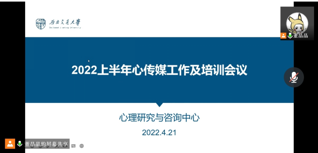 心传媒于2022年4月21日下午通过线上会议召开2022上半年工作及培训会议。本次活动由心传媒主任董晶晶主持,心传媒全体成员参加。